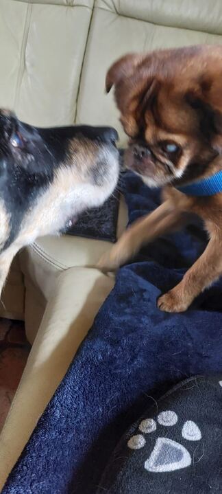 Nun ist Barni auf einer unserer wundervollen Pflegestellen angekommen, bei der lieben Sabine, die ihn mit Wärme und Fürsorge empfängt. Doch man spürt, wie fremd ihm die Welt noch ist. Nach so vielen Jahren im vertrauten Zuhause ist alles neu – neue Gerüche, neue Stimmen, neue Wege. Seine Augen, durch die er einst seine Welt betrachtete, sind nun fast erloschen. Eine starke Linsentrübung nimmt ihm das Sehen, doch vielleicht sieht Barni heute mit dem Herzen – und das schlägt voller Vertrauen, voller leiser Hoffnung.