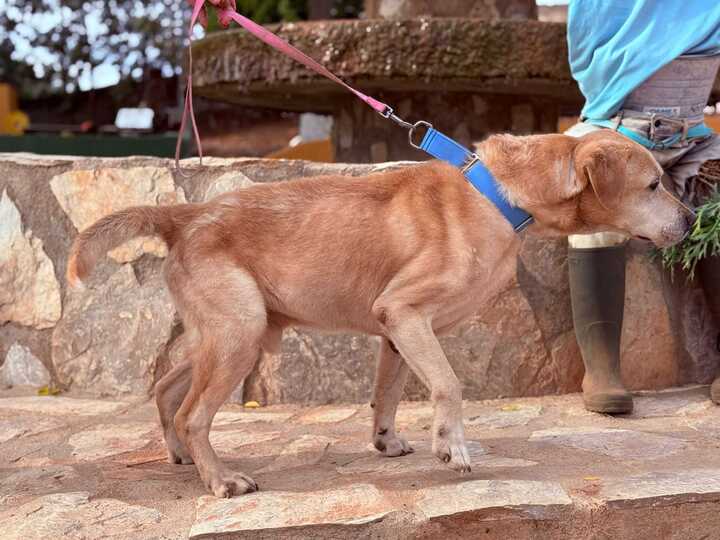 Heute lebt er in unserer Obhut im Tierheim und zeigt, welch sanftes Herz in ihm schlägt. Er versteht sich mit allen Hunden und ist auch mit Katzen vollkommen entspannt – freundlich, leise, dankbar für jede Zuwendung. Harte Stellen an seinem Ellenbogen – eine Schwiele vom Schlafen auf kaltem Boden..Medizinisch holen wir nach, was versäumt wurde. Er frisst gut und lässt sich liebevoll versorgen. Casper ist zart gebaut (ca. 20 kg, 50 cm), ein älterer Labrador-Rüde mit stillen Augen, die endlich lernen, zu strahlen.