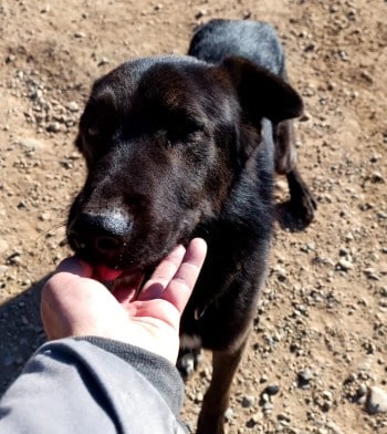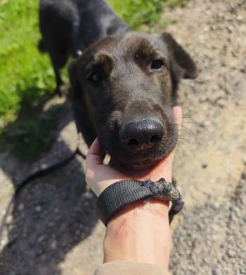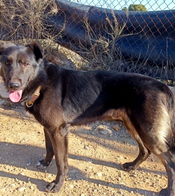 Dieser Black Beauty Rüde hat eine Schulterhöhe von ca. 57 cm, sein geschätztes Geburtsdatum ist Dezember 2021. Seinen Zwinger teilt er mit einer Hündin, verträgt sich aber auch mit männlichen Artgenossen.