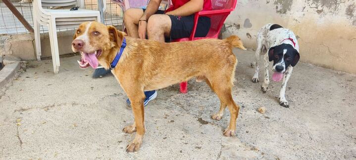 Der Bretonen-Podenco-Andaluz-Mix Rüde wurde im August 2025 von einem Pärchen ins Tierheim gebracht, nachdem sie ihn mehrfach alleine auf den Straßen umherirren sahen. So fand Ibay, wie er im Tierheim liebevoll genannt wird, endlich einen sicheren Platz und muss nicht mehr umherstreunen.