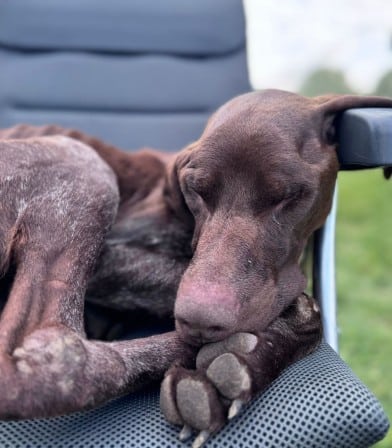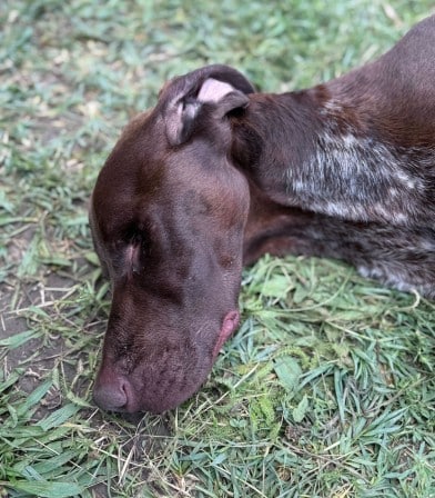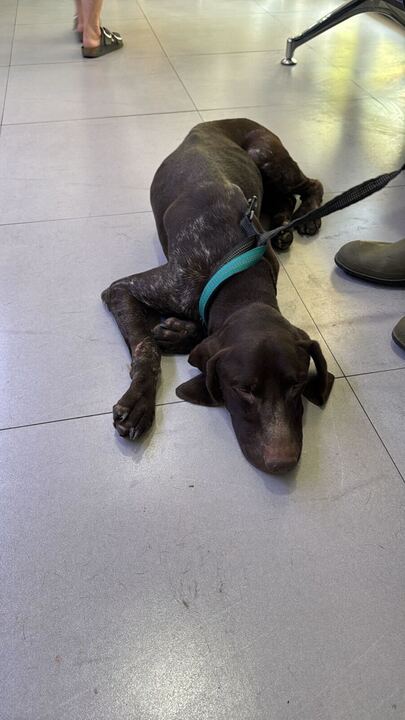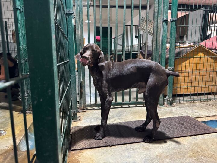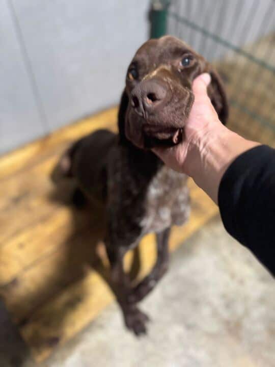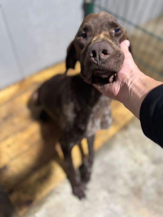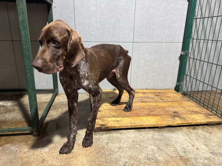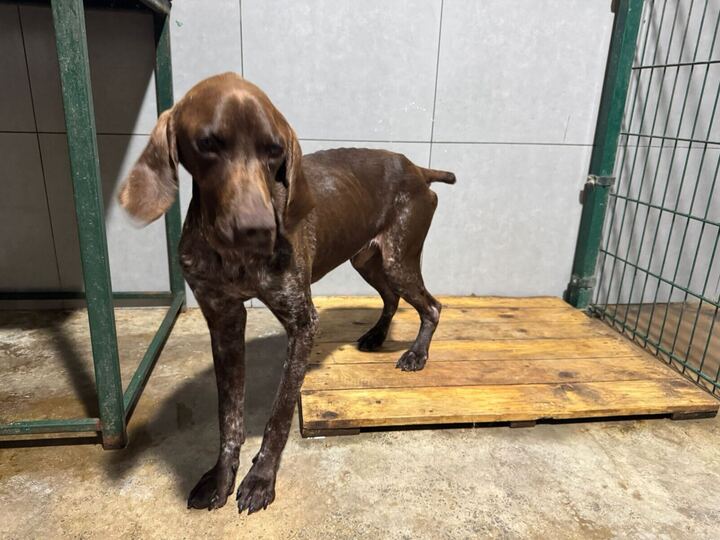 Lucky ist ein junger Deutsch-Kurzhaar-Rüde, geschätzt auf ein bis zwei Jahre alt. Noch so jung – und doch hat er schon mehr durchlebt, als ein Hund je ertragen sollte.