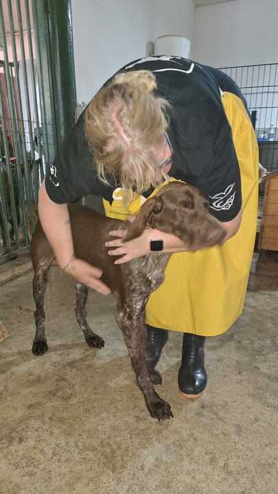 Man mag sich kaum vorstellen, was ihm widerfahren ist. Als ein liebevoller Tourist ihn fand, war Lucky nur noch ein Schatten seiner selbst: abgemagert, schwach, in einem erschütternden Allgemeinzustand, allein auf der Straße. Dieser wundervolle Mensch brachte ihn sofort zum Tierarzt, ließ ihn medizinisch versorgen – und nahm ihn schließlich mit in seinen Wohnwagen. Drei Wochen lang durfte Lucky dort zum ersten Mal erleben, was Fürsorge, Wärme und Geborgenheit bedeuten können.