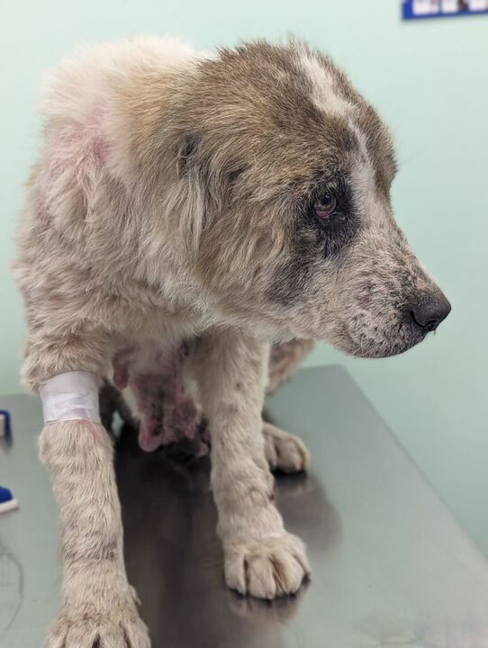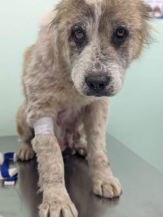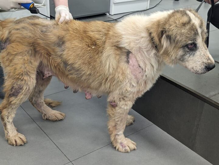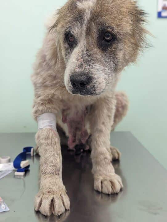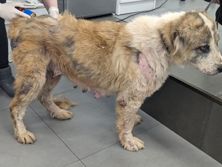 Malu war eine Hündin, die in ihrem Leben wohl kaum je etwas Gutes erfahren durfte. Gefunden auf der Straße, ausgemergelt bis auf die Knochen, suchte sie verzweifelt nach etwas Essbarem – ein kleines Stück Brot in der Pfote, als unser Teammitglied sie entdeckte. Ihr Körper war erschöpft, das Fell fast ausgefallen. Ihre Zitzen erzählten stumm von Jahren, in denen sie als Gebärmaschine missbraucht worden war. Und doch kämpfte sie mit letzter Kraft um ihr Leben.