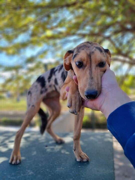 Im Sommer 2024 wurde Rain, ein zartes, etwa einjähriges Hundemädchen / Stand Januar 2025., einfach vor dem Tierheim ausgesetzt – allein, verunsichert und ihrem Schicksal überlassen. Ihre Haut war von Parasiten geplagt, ihr Körper geschwächt, doch sie kämpfte sich tapfer durch. Mittlerweile sind ihre Wunden verheilt, aber die Narben in ihrer Seele brauchen noch Zeit, um zu verschwinden.
