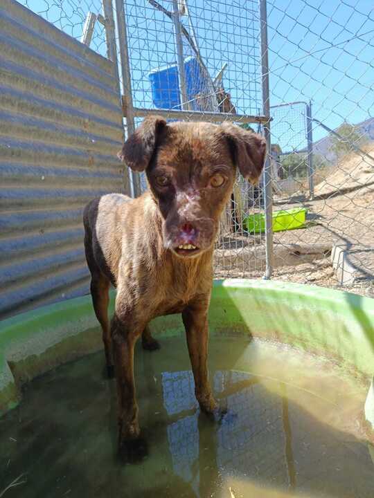 Teeth wurde gemeinsam mit seinem Bruder in der Wildnis eingefangen. Beide waren in einem sehr schlechten körperlichen Zustand, geschwächt und gezeichnet von Entbehrung und Hunger. Besonders Teeth hatte es schwer: Ihm fehlt ein Teil der Nase und der Oberlippe, und er leidet an mehreren Mittelmeerkrankheiten.
