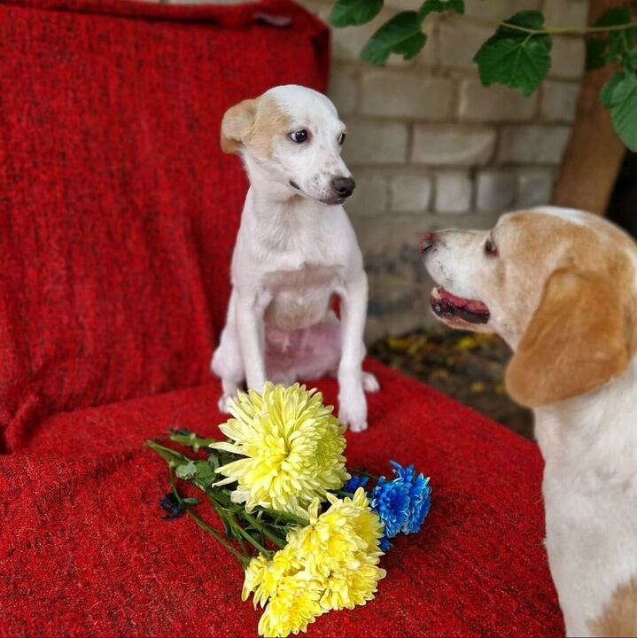 Doch das Schicksal hatte andere Pläne für sie. Heute liegt Jina nicht mehr auf dem harten Boden – sondern in einem weichen Körbchen, dicht an einen anderen Hund geschmiegt, der ihr Schicksal teilt. Auch Kursha holten wir aus demselben Tierheim, auch er querschnittsgelähmt – und nun sind sie vereint. Zwei verletzte Seelen, die sich gefunden haben.
