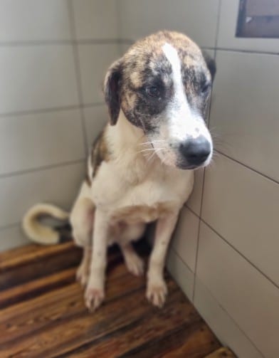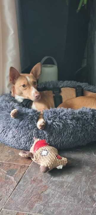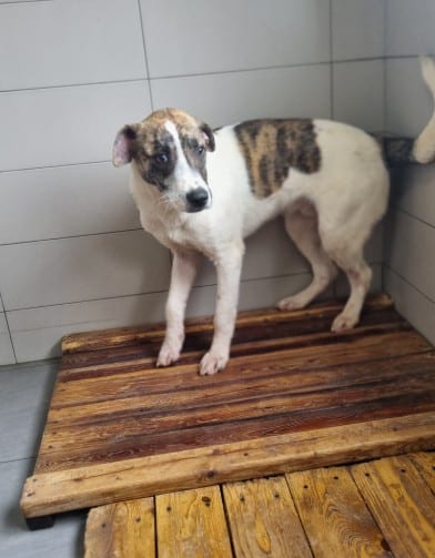 Diese zauberhafte Podenca wurde ganz allein auf einer vielbefahrenen Straße aufgegriffen. Im Juli 2024 nahm unser Team in Lleida, Spanien, sie in seine Obhut und brachte sie in Sicherheit ins Tierheim.