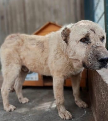 Sein Alter, seine Größe und seine Erkrankungen ließen seine Chancen in Georgien gegen Null sinken. Und auch im Ausland stand ihm vieles im Weg: Rasseeinstufung als Listenhund, kupierte Ohren und Rute – all das machte eine Vermittlung fast unmöglich. Ein wunderschöner Hund aus einer seltenen Rasse, ohne Lobby. Zehn Jahre alt – und kaum ein guter Moment in seinem Leben.
