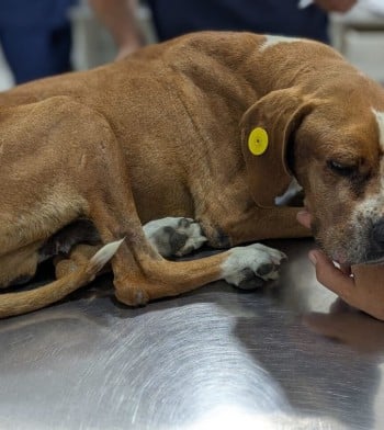 Heute möchten wir euch von Tom erzählen, einem tapferen neunjährigen Pointer, der sein ganzes Leben auf den Straßen Georgiens verbracht hat. Dass er nicht verhungert ist, verdankt er einer lieben Frau, die ihn hin und wieder gefüttert hat. Doch ansonsten war er auf sich allein gestellt. Kalte und einsame Nächte, Menschen, die ihm nichts Gutes wollten, kein warmes Bett, kein Schutz vor dem eisigen Wetter, keine liebevolle Hand, die ihn streichelte – das war Toms Alltag. Immer bestand die Gefahr, von einem Auto überfahren oder von bösen Menschen geschlagen und verjagt zu werden. Leider ist genau das, wovor er so lange fliehen musste, doch geschehen: Vor einigen Jahren wurde Tom von einem Auto erfasst. Trotz der schweren Verletzungen hat er sich einigermaßen erholen können. Doch vor zwei Wochen erlitt er einen Schlaganfall. Dass er diesen überlebt hat, grenzt an ein Wunder. Nur durch das schnelle Eingreifen unserer wundervollen Tiko lebt Tom heute noch. Aber so kann er auf keinen Fall wieder auf die Straße zurück.